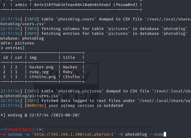 접속이 잘되면 kali에서 sqlmap을 해보고