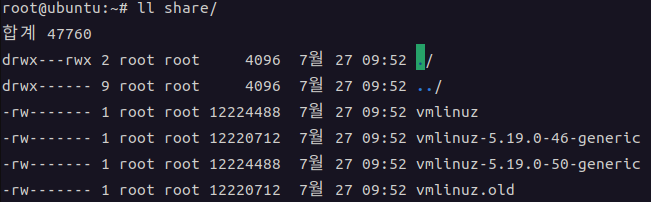 제대로 적용되었다면 방금 생성한 폴더가 위에 설정한 707 권한으로 변경된걸 확인할 수 있다