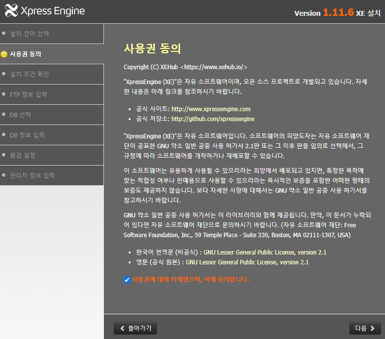 위 링크에서 xe core ver 1.11.6 의 다운링크를 복사해준후