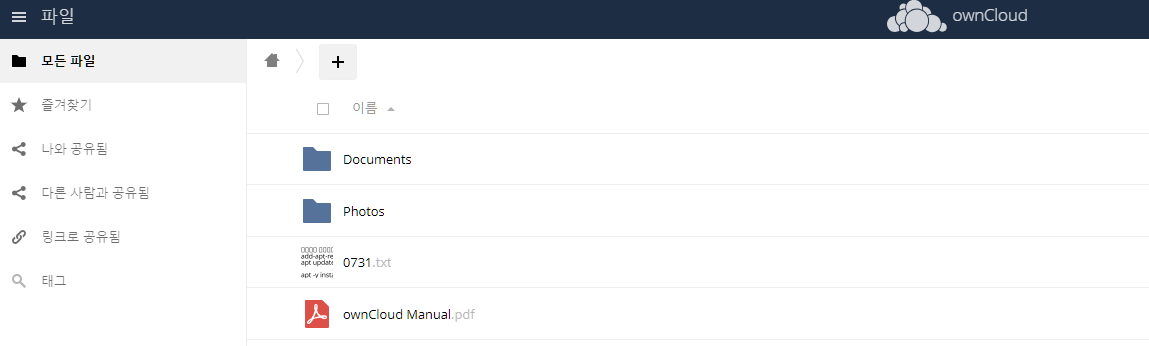 mkdir owncloud/data # 웹하드 저장소로 쓸곳