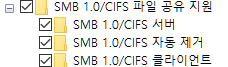 samba 테스트를 위해 window에 SMB 기능을 전부 켜주고 공유 폴더 하나를 만든다
