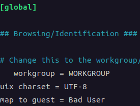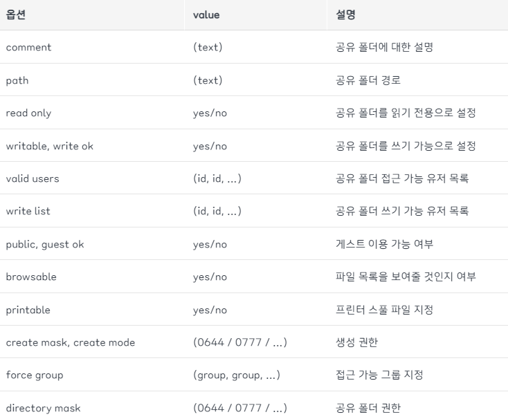 samba 설정 파일을 열어준후 맨아래 공유 설정을 적어준다