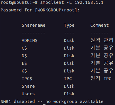workgroup 설정은 접속할 윈도우 계정의 그룹을 설정